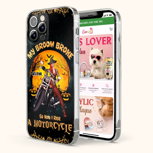 View full detailsCustom Personalized Witch Phone Case - Upto 4 Dogs - Halloween Gifts For Friends/Dog Lovers - My Broom Broke So Now I Ride A Motorcycle - Case For iPhone/Samsung