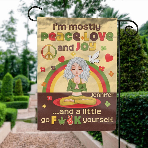 View full detailsCustom Personalized Yoga Flag Sign - Gift Idea For Yoga Lover - I'm Mostly Peace Love and Joy