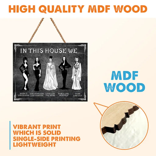View full detailsCustom Personalized Wooden Sign Gift Idea For Halloween - In This House We Dance Like Mortica