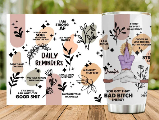 View full detailsCustom Personalized Yoga Girl Tumbler - Gift Idea For Yoga Lovers - Daily Reminders I Am Strong Af
