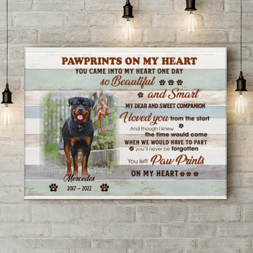 View full detailsCustom Photo Dog Canvas - Memorial Passing Gift For Dog Lover - You Left Paw Prints On My Heart