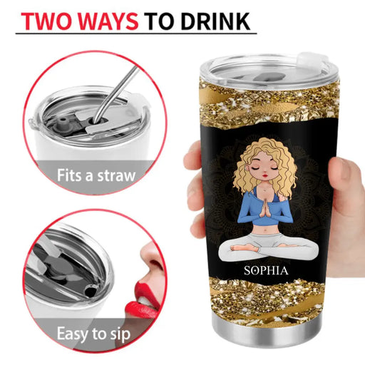 Custom Personalized Yoga Tumbler - Gift Idea for Yoga Lovers - I'm Mostly Peace Love And Light