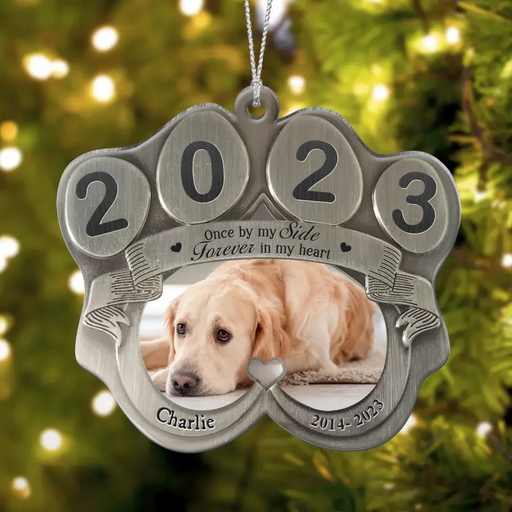 View full detailsOnce By My Side Forever In My Heart - Personalized Memorial Dog Aluminum Ornament - Memorial Gift Idea For Christmas - Upload Pet Photo