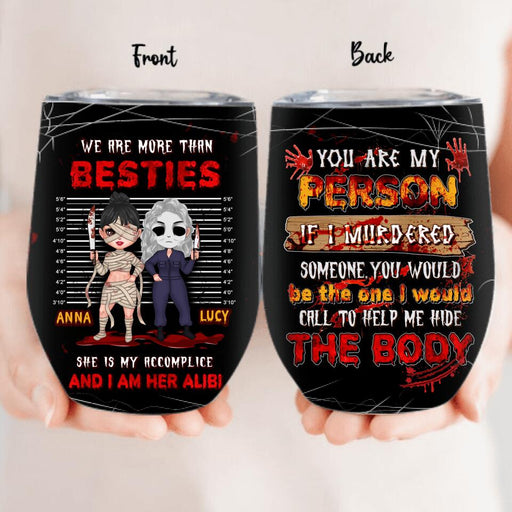 Personalized Accomplice & Alibi Friends/Sisters Wine Tumbler - Halloween Gift Idea For Friends/Sisters - You Are My Person