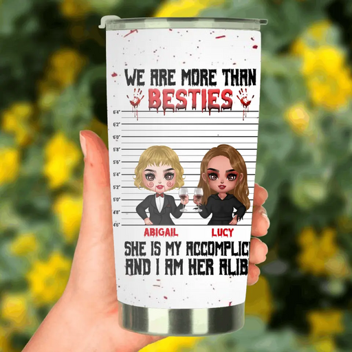 View full detailsPersonalized Accomplice And Alibi Halloween Tumbler - Halloween Gift For Friends/Besties - Up to 5 Girls - We Are More Than Besties