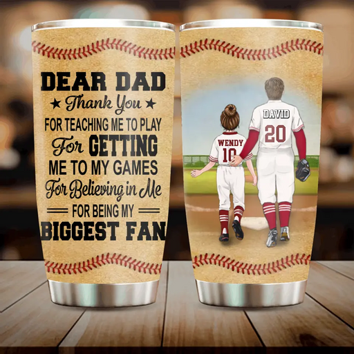 View full detailsPersonalized Baseball Dad Tumbler - Up to 2 Children - Father's Day Gift Idea for Baseball Lovers - Dear Dad Thank You For Teaching Me To Play