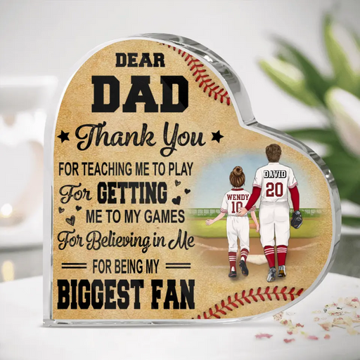 View full detailsPersonalized Baseball Dad Crystal Heart - Up to 2 Children - Father's Day Gift Idea for Baseball Lovers - Dear Dad Thank You For Teaching Me To Play
