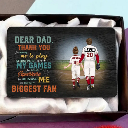 View full detailsPersonalized Baseball Dad Aluminum Wallet Card - Up to 2 Children - Father's Day Gift Idea for Baseball Lovers - Dear Dad Thank You For Teaching Me To Play