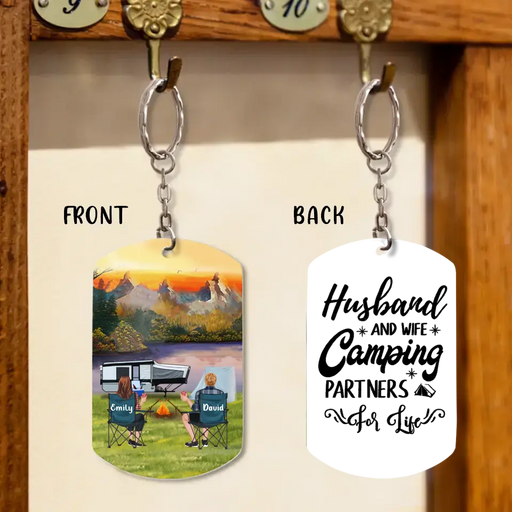 View full detailsPersonalized Camping Aluminum Keychain - Adult/Couple with Up to 2 Dogs/Cats - Gift Idea for Camping/Dog/Cat Lovers - Husband And Wife Camping Partners For Life