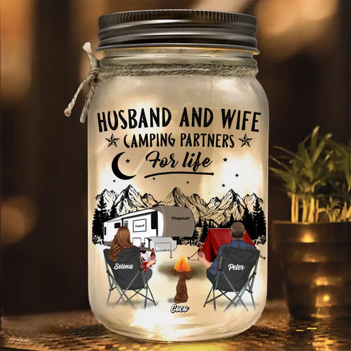 View full detailsPersonalized Camping Mason Jar Light - Gift Idea for Camping Lovers - Up to 4 Kids & 3 Pets - Husband And Wife Camping Partners For Life