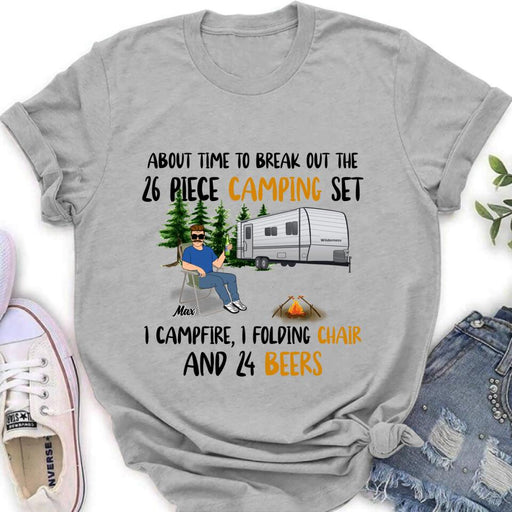 View full detailsPersonalized Retired Camping Shirt/Pullover Hoodie - Retired Gift Idea For Camping Lover - About Time To Break Out The 26 Piece Camping Set 1 Campfire 1 Folding Chair And 24 Beers