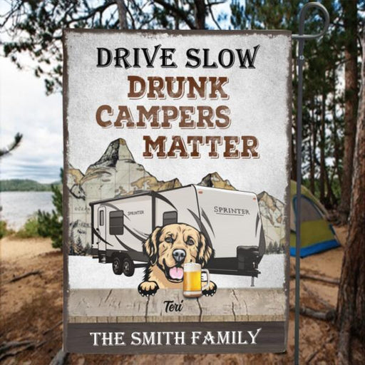View full detailsPersonalized Camper With Dog Camping Flag Sign - Drive Slow Drunk Campers Matter - SNY9JA