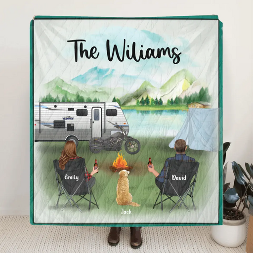 View full detailsPersonalized Couple Camping Quilt - Gift Idea For Camping Couple - Couple And 1 Pet - Custom Family Name