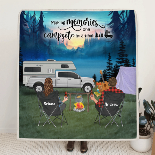 View full detailsPersonalized Camping Blanket, Gift For Couple and Family up to 3 Kids and 3 Dogs - Making Memories One Campsite At A Time - 341148