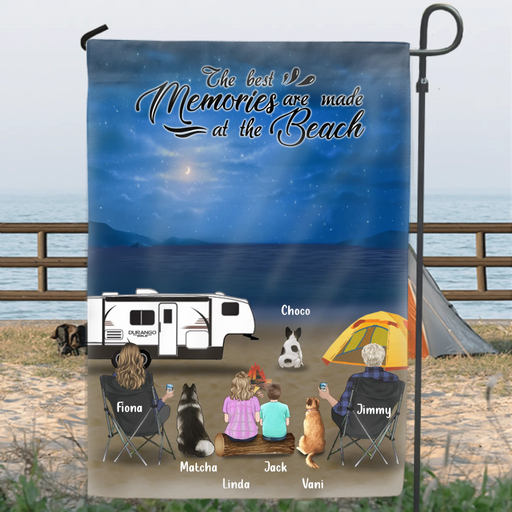 View full detailsPersonalized Night Camping At Beach Garden Flag - Whole Family Up to 2 Kids 3 Pets - R8SZGQ