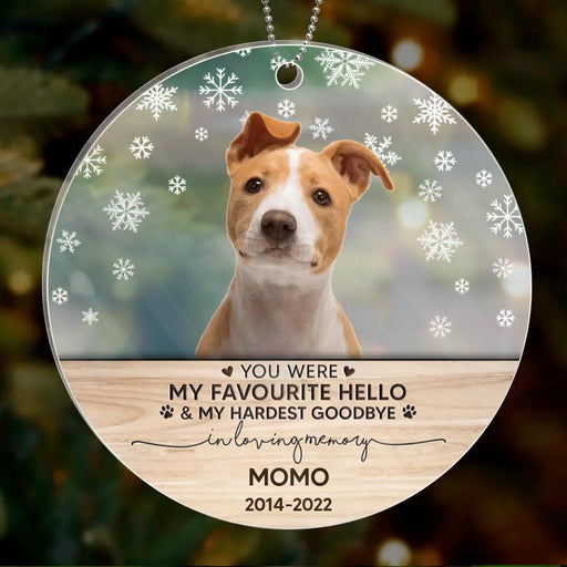 View full detailsPersonalized Memorial Pet Photo Acrylic Ornament - Memorial Gift Idea For Pet Lovers - You Were My Favourite Hello & My Hardest Goodbye