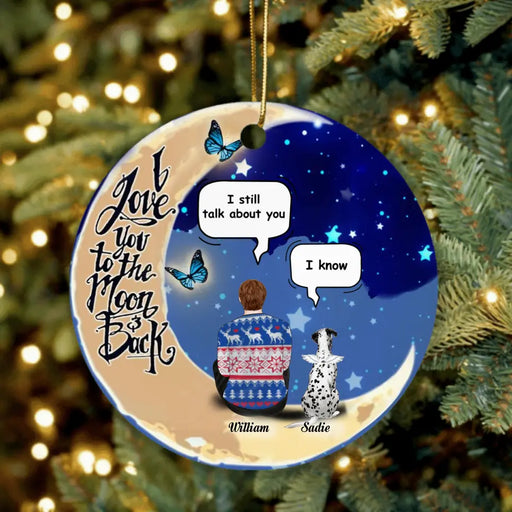 View full detailsPersonalized Dog Moon Memorial Ornament - Man With Up to 4 Dogs - Gift For Dog Lover - I Love You To The Moon And Back