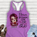 Personalized Skull Girl AOP Women's Racerback Tank Top - Gift Idea For Halloween/Friend - I Stuck Between IDK IDC And IDGAF
