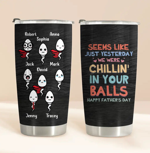 View full detailsPersonalized Father Tumbler - Best Gift Idea For Father/Father's Day - Up to 6 Sperms - Seems Like Just Yesterday We Were Chillin' In Your Balls Happy Father's Day