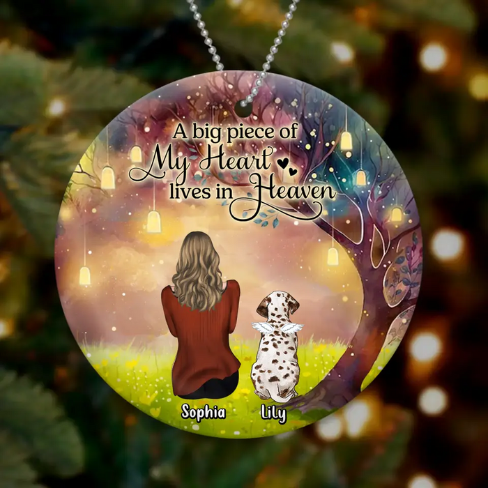 Personalized Memorial Dog Mom Circle Wooden/Acrylic Ornament - Memorial Gift Idea For Dog Lover - A Big Piece Of My Heart Lives In Heaven