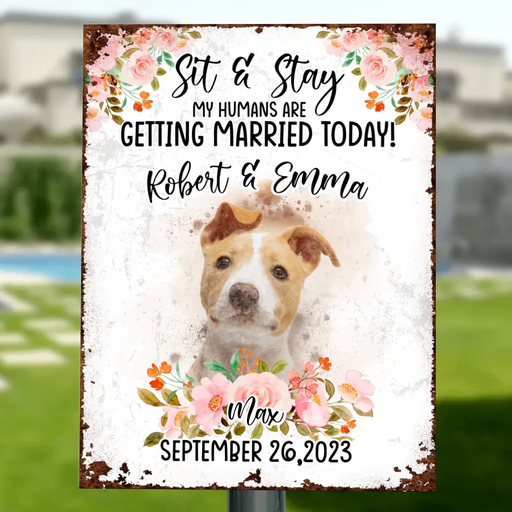 View full detailsPersonalized Dog Wedding Metal Sign - Upload Photo - Wedding Gift Idea For Couple/Dog Lover - Sit & Stay My Humans Are Getting Married Today