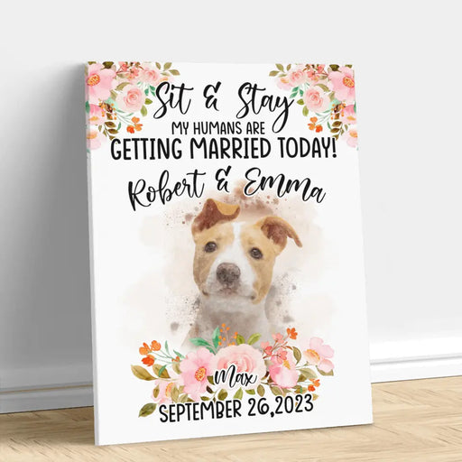View full detailsPersonalized Dog Wedding Canvas - Upload Photo - Wedding Gift Idea For Couple/Dog Lover - Sit & Stay My Humans Are Getting Married Today!