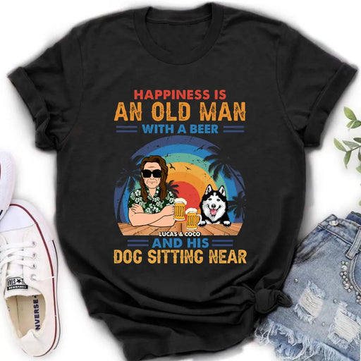 View full detailsPersonalized Dog Shirt/Hoodie - Gift Idea For Dog Lovers - Happiness Is An Old Man With A Beer And His Dog Sitting Near
