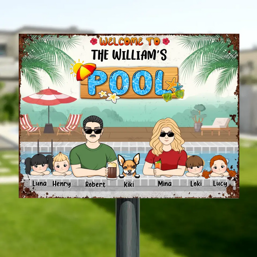 View full detailsPersonalized Family Horizontal Metal Sign - Gift Idea For Family/Dog Lover - Up to 4 Kids - Welcome To The William's Pool