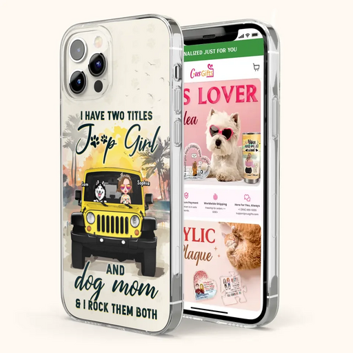 View full detailsCustom Personalized Dog Mom Phone Case - Upto 3 Dogs - Gift Idea for Dog Lovers/Off-road Lovers - I Have Two Titles Jeep Girl And Dog Mom & I Rock Them Both - Case for iPhone/Samsung