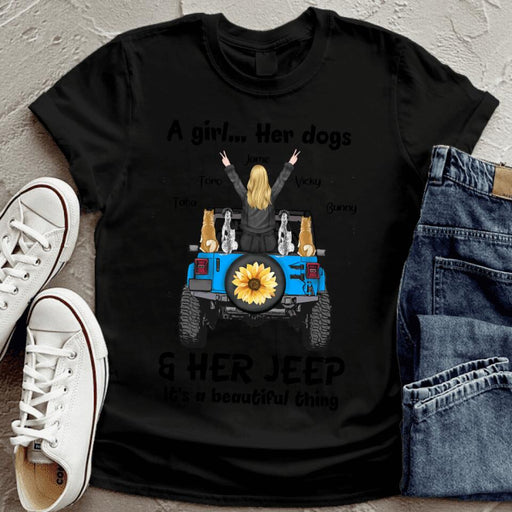 Personalized Off-road Dog Mom T-shirt - Up to 4 Dogs - A Girl Her Dogs - 2OTN07