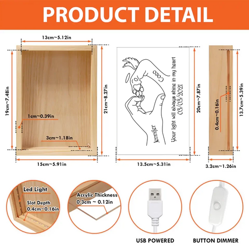 Best Material: Our Personalized Picture Frame Light Box is designed and made from pine wood. This light fixture features a high-quality wooden fra...