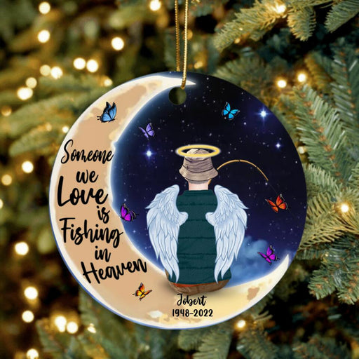 View full detailsPersonalized Fishing In Heaven Moon Circle Ornament - Memorial Gift Idea For Dad/Husband - Someone We Love Is Fishing In Heaven