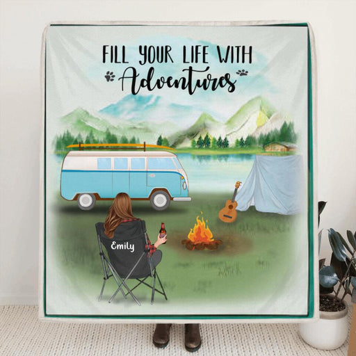 View full detailsPersonalized Camping Blanket - Man/Woman Up to 6 Pets & 6 Kids - Gift For Single Dad/Mom - Fill Your Life With Adventures