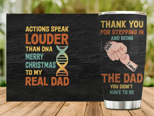 View full detailsPersonalized Dad Tumbler - Gift Idea For Dad - Up to 6 Kids - Actions Speak Louder Than DNA Merry Christmas To My Real Dad
