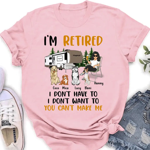 Personalized Pet Mom/Dad Camping Shirt/Hoodie - Gift Idea For Dog/Cat Lovers - Up to 4 Dogs/Cats - I'm Retired I Don't Have To I Don't Want To You Can't Make Me
