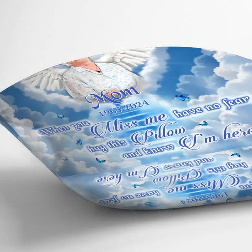 View full detailsPersonalized Memorial Pillow Cover - Memorial Gift Idea - Upload Mom/Dad Photo - When You Miss Me Have No Fear Hug This Pillow And Know I'm Here