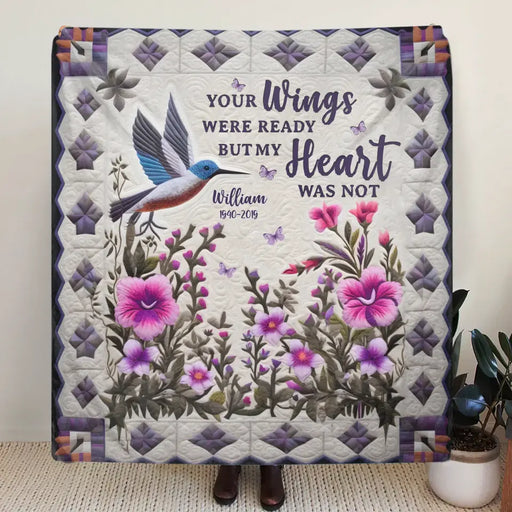 View full detailsPersonalized Hummingbird Memorial Fleece Throw Blanket/Quilt - Memorial Gift Idea For Family Member/Dad/Mom - Your Wings Were Ready But My Heart Was Not