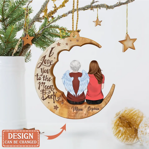 Personalized Memorial Moon Wooden Car Ornament - Memorial Mom/Dad Gift Idea - I Love You To The Moon And Back