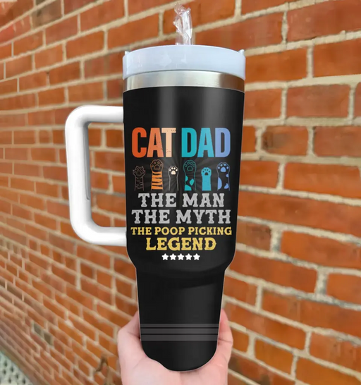 Personalized Cat Dad 40oz Tumbler - Father's Day Gift To Cat Lover - Up to 7 Cats - Cat Dad The Man The Myth The Poop Picking Legend