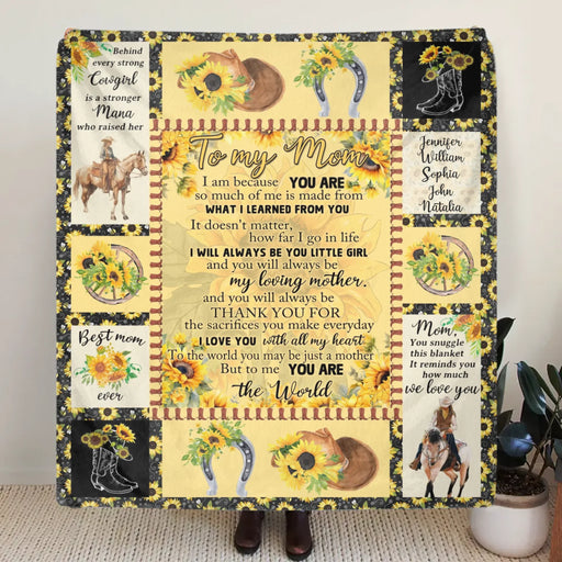 View full detailsPersonalized To My Mom Sunflower Fleece Throw Blanket/ Quilt – Cowgirl Theme with Up to 5 Kids’ Names – Heartfelt Mother’s Day or Birthday Gift