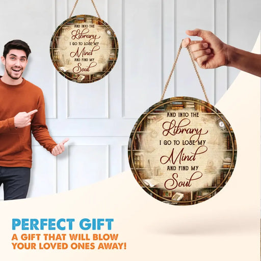 Personalized Library Wooden Sign - Gift Idea For Books Lover - And Into the Library I Go to Lose My Mind and Find My Soul