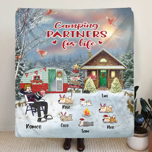 View full detailsPersonalized Christmas Camping Quilt/Fleece Throw Blanket - Adult/Couple With Up to 6 Pets - Christmas Gift For Dog/Cat Lover - Camping Partners For Life