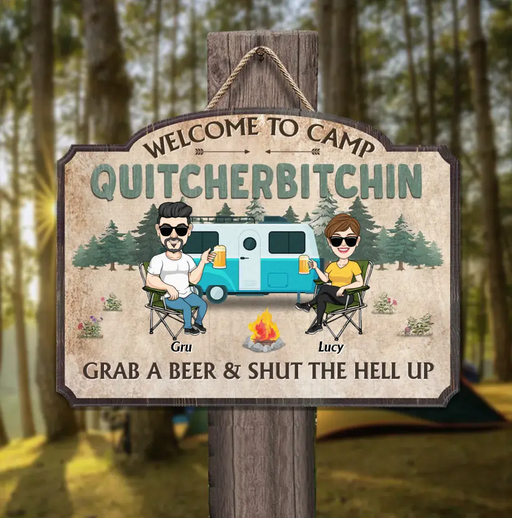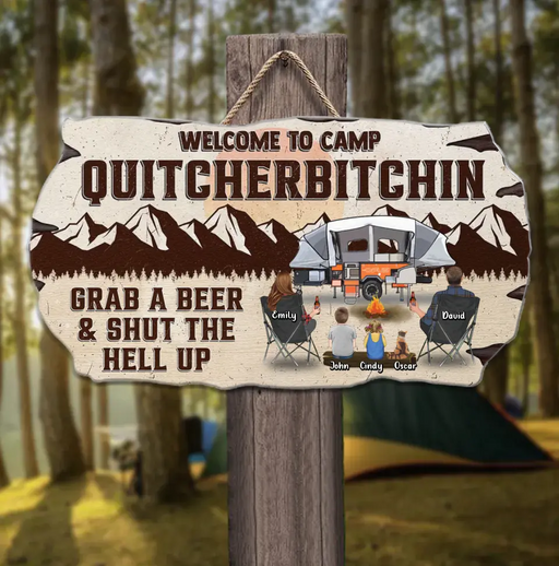 View full detailsPersonalized Camping Wooden Sign - Gift Idea For Couple/Family/Camping Lovers - Couple With Up to 2 Children And 3 Pets - Welcome To Camp Quitcherbitchin