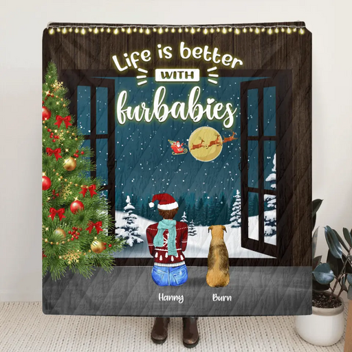 View full detailsPersonalized Christmas By Window Quilt/Fleece Blanket - Man/Woman/Couple With Up to 3 Kids, 4 Pets - Best Gift For Christmas - Life Is Better With Furbabies
