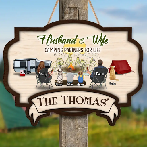 View full detailsPersonalized Camping Wooden Sign - Couple With Up to 2 Children & 3 Pets - Camping Lovers Gift Idea - Husband & Wife Camping Partners For Life
