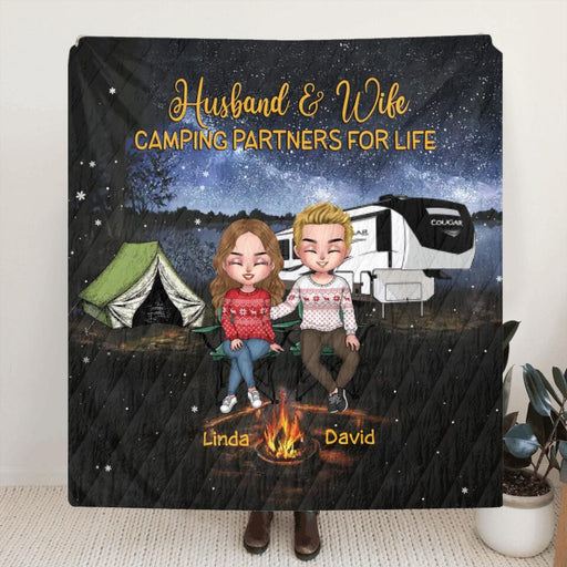 View full detailsPersonalized Camping Christmas Couple Fleece Throw Blanket/Quilt - Gift Idea For Camping Lovers - Couple With Up To 4 Dogs - Husband And Wife Camping Partners For Life