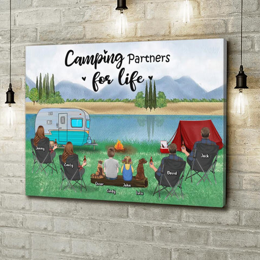 View full detailsPersonalized Camping Canvas - Best Gift For Family/Camping Lovers - 2 Couples With 2 Children And 2 Pets - Camping Partners For Life