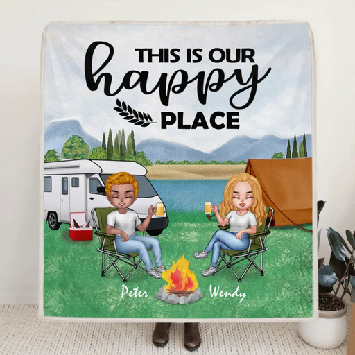 View full detailsPersonalized Camping Chibi Quilt/Fleece Blanket - Couple With Up to 3 Dogs - Gift Idea For Dog/Camping Lover/Couple - This is Our Happy Place