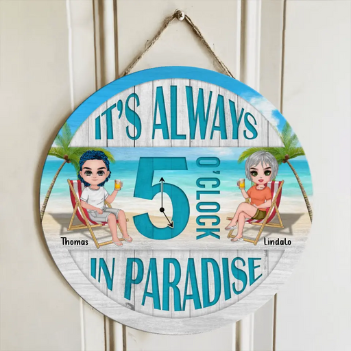 View full detailsPersonalized Beach Couple Door Sign - Gift For Beach Lovers/Couple - It's Always 5 O' Clock In Paradise