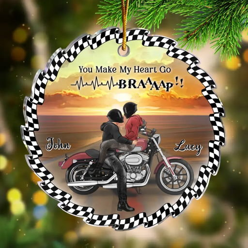 Personalized Biker Couple Acrylic Ornament - Gift Idea For Couple & Biker Lover - You Make My Heart Go Braaaap!